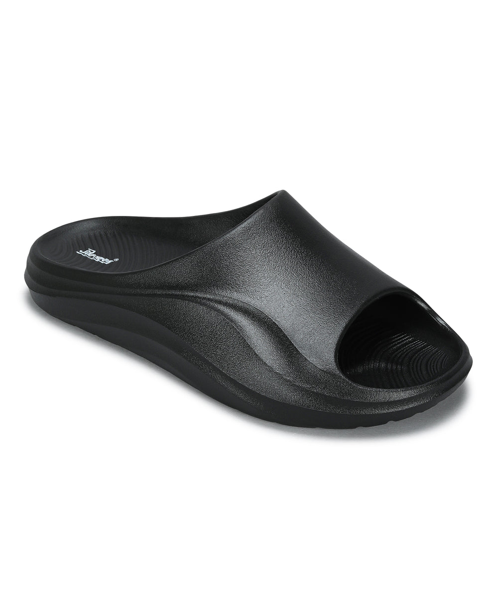 Paragon Men's Slip-on Black Sandals for Men | Comfortable Sole & Durable