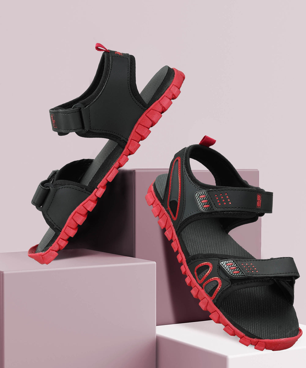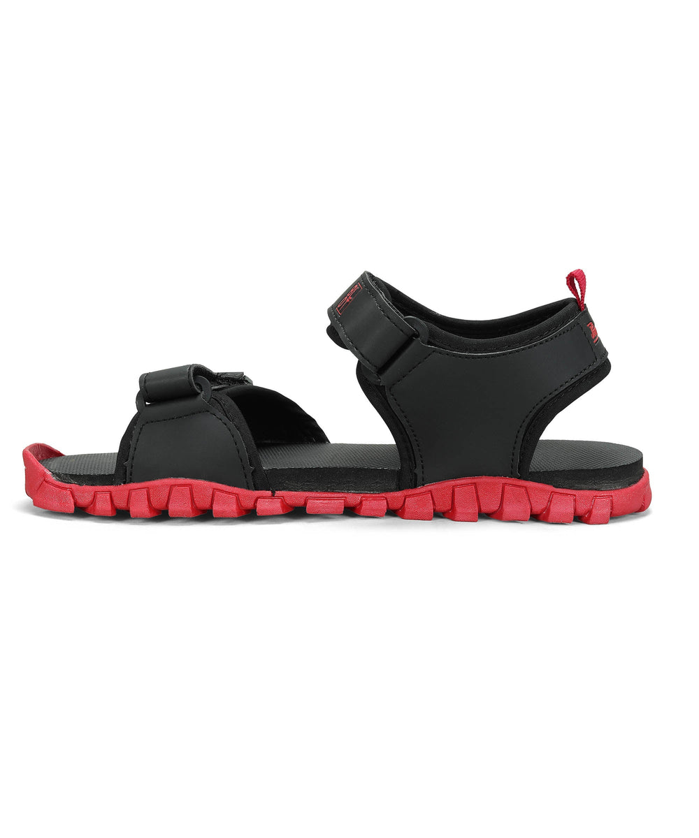 Paragon Men's Stylish Lightweight & Durable Black Red Velcro Dailywear Sandals