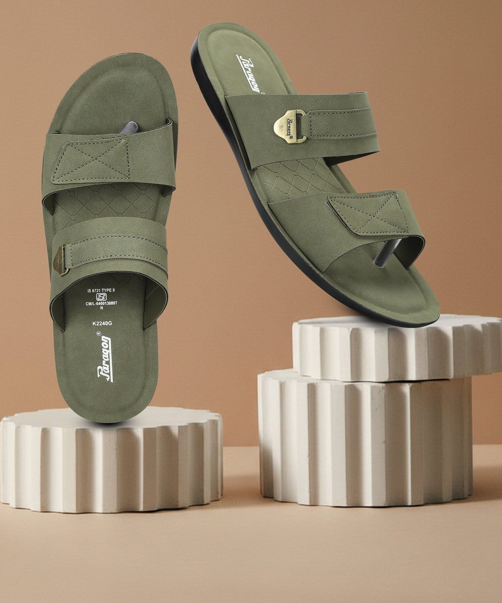 Paragon Men's Lightweight Olive Green Flip Flops for Everyday Use